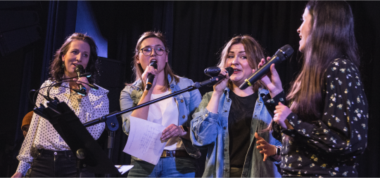 Du liebst das Singen, du möchtest dich ausprobieren, deine Stimme finden, Atem- und Gesangstechniken erlernen und ggf.  erste Bühnenerfahrung sammeln? Wir singen mehrstimmig im Chor, mit Live-Band, a cappella oder auch mal solo. Jeden Donnerstag trainieren wir als Gruppe sowohl für unser eigenes Musikerherz als auch für Live-Auftritte bei lokalen Veranstaltungen und freuen uns immer über motivierte Verstärkung!